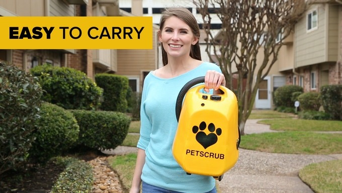 Made with light-weight materials, the Petscrub is easy to carry around and bring with you on trips with your dog. It only weighs 7 pounds, which is about the weight of a Chihuahua. The brush weighs less than half a pound, which makes it easy for elderly to use, or anyone with health problems.