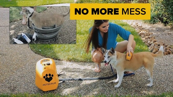 PetScrub will brush, bathe, and dry your dog in three easy steps.