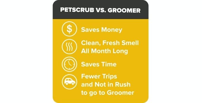 End the hassle and stress of going to the groomer with PetScrub. PetScrub will not only save you the money you would normally spend going to the groomer, but it also saves a lot of time out of your day and you won’t have to worry about all the trips or rush to get to the groomer.
